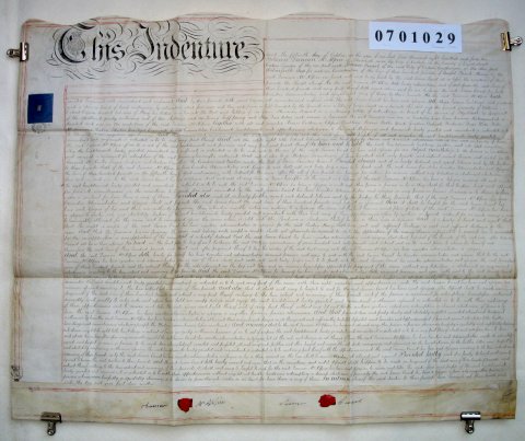 | Parchment : 1 sheet 63cm x 77 cm with 2 wax seals, 2 signatures and revenue stamp. | ||||||||||||