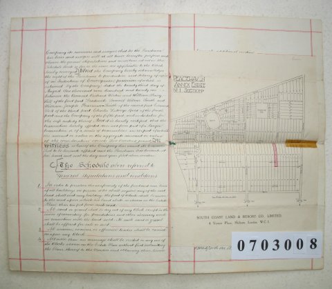 | 1) Paper : 2 sheets 40cm x 26cm with revenue stamps and plan of the estate. 2) A second Indenture of November 1921 has been added on the cover. Plan of Peacehaven Annex Estate No 1 Section. | |||||||||||