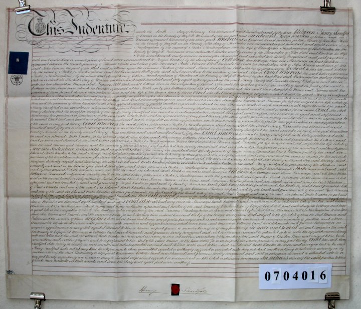 | Parchment : 1 sheet 59cm x 71cm with 1 wax seal, signature and revenue stamp | |||||||||||||