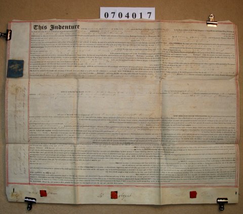 | Parchment : 1 sheet 51cm x 62cm with 3 wax seals, 3 signatures and revenue stamp. Printed document with manuscript insertions. | |||||||||||