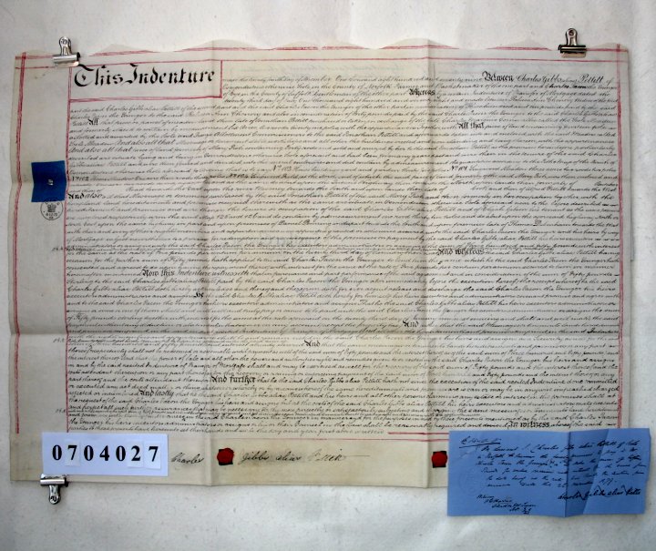 | Parchment : 1 sheet 51cm x 72cm with 2 wax seals, 1 signature and revenue stamp. A separate paper note is attached. | |||||||||||||