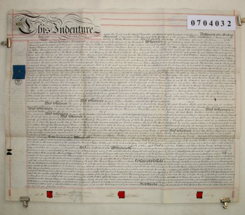 | Parchment : 1 sheet 60cm x 72cm with 3 wax seals, 3 signatures and revenue stamp. | |||||||||||||