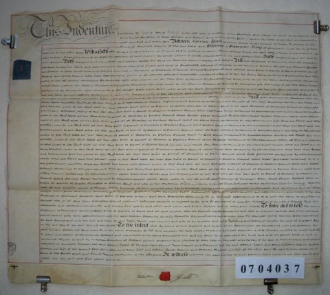 | Parchment : 1 sheet 60cm x 69cm with 1 wax seal, signature and revenue stamp | |||||||||||