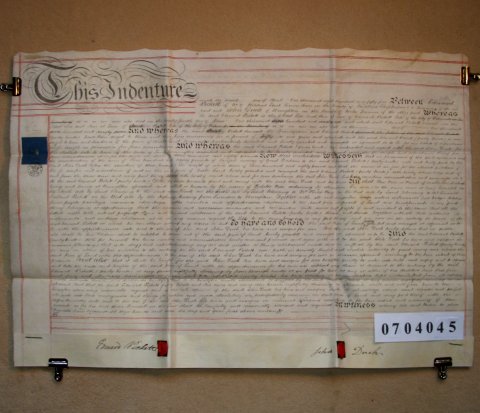 | Parchment : 1 sheet 50cm x 74cm with 2 wax seals, 2 signatures and revenue stamp | ||||||||||||