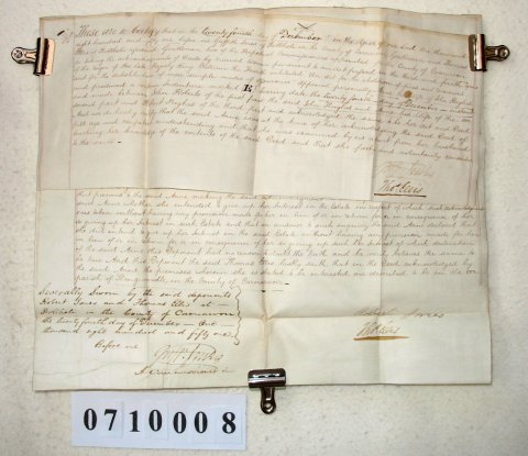 | In this case the people involved are John HUGHES and Anne his wife. The property is in the Parish of Llangwnadle, Carnarvon, and was either sold or mortgaged on 24 December 1851.