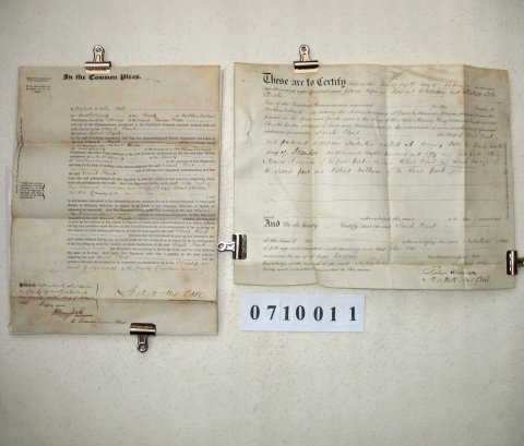 | In this case the people involved are Robert PEART and Sarah his wife. The property is in the Parish of Tynmouth, Northumberland, and was either sold or mortgaged on 26 December 1851.