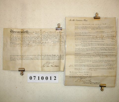 The document was sworn before Two of the perpetual Commissioners appointed for taking the acknowledgments of Deeds by Married Women, in York, Yorkshire. | ||||||||||||||