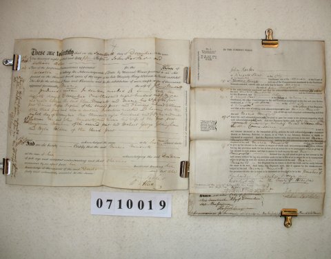 | This ORIGINAL document is a standard certificate which arises from the sale or mortgage of property which had belonged to a married woman. At this period (ie after 1833 but prior to the Married Women's Property Act of 1882) any property of a married woman passed immediately to her husband. As some sort of safeguard she would be examined by a commissioner appointed for the purpose who would satisfy himself that she was of full age and understood what was going on. The document is signed by the commissioner, but not by either the husband or wife. It gives the parish in which the property is located and date of the transaction, but no further detail. | ||||||||||||||