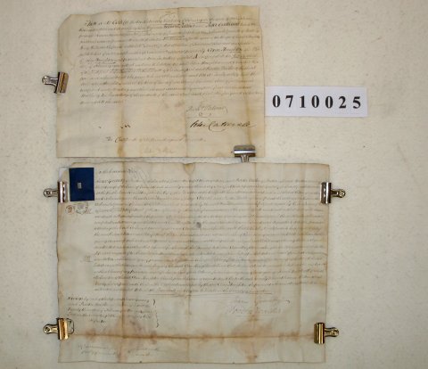| Parchment : 2 sheets 29cm x 21cm and 36cm x 28m with revenue stamp | ||||||||||||||