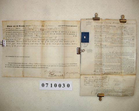 | Parchment : 2 sheets 34cm x 26cm and 35cm x 24cm with revenue stamp | ||||||||||||||