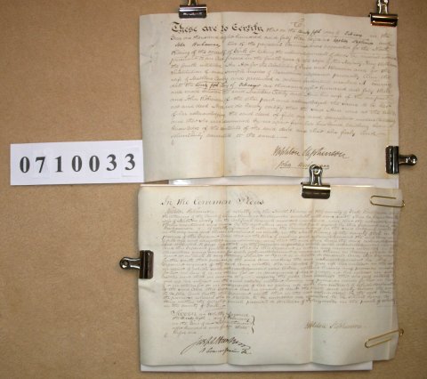 | This ORIGINAL document is a standard certificate which arises from the sale or mortgage of property which had belonged to a married woman. At this period (ie after 1833 but prior to the Married Women's Property Act of 1882) any property of a married woman passed immediately to her husband. As some sort of safeguard she would be examined by a commissioner appointed for the purpose who would satisfy himself that she was of full age and understood what was going on. The document is signed by the commissioner, but not by either the husband or wife. It gives the parish in which the property is located and date of the transaction, but no further detail. | ||||||||||||||