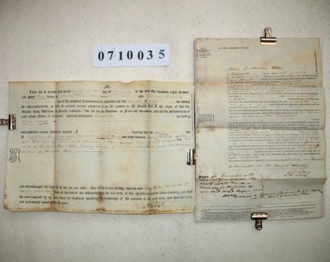 The document was sworn before Two of the perpetual Commissioners appointed for taking the acknowledgments of Deeds by Married Women, in Arundel, Sussex. | ||||||||||||||