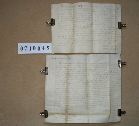 The property concerned is in the Parish of Clifton, Bristol, and was either sold or mortgaged on 1 March 1843. The document was sworn before Two of the perpetual Commissioners appointed for taking the acknowledgments of Deeds by Married Women in Bristol, Gloucestershire. | ||||||||||||||