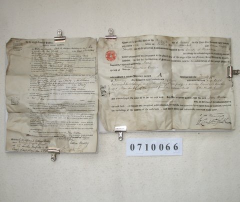 | Description: | Parchment : 2 sheets 24cm x 36cm and 36cm x 24cm with revenue stamp | |||||||||||||