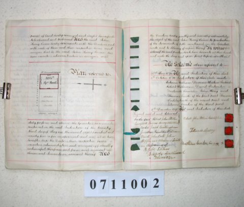 | Parchment : 4 sheets 22cmx27cm with 12 wax seals, 12 signatures, revenue stamp and small plan of the property | |||||||||||