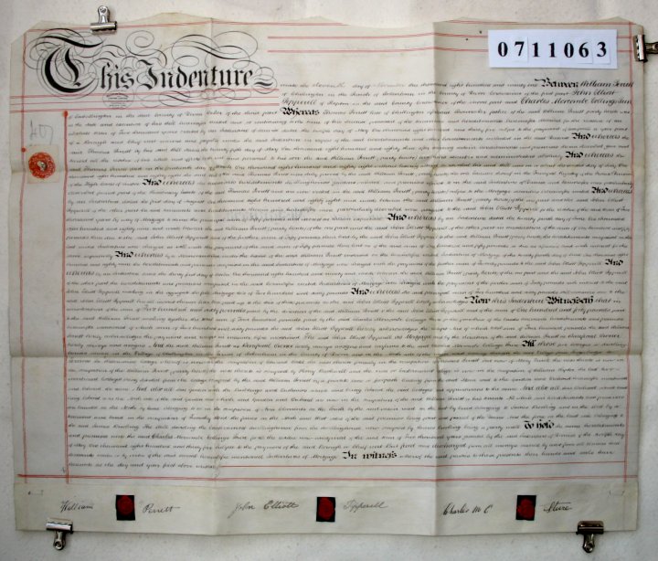 | Parchment : 1 sheet 56cm x 73cm with 3 wax seals, 3 signatures and revenue stamp | ||||||||||||