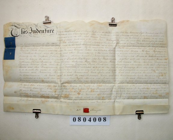 | Parchment : 1 sheet 35cm x 62cm with 1 wax seal, signature and revenue stamp. | ||||||||||||