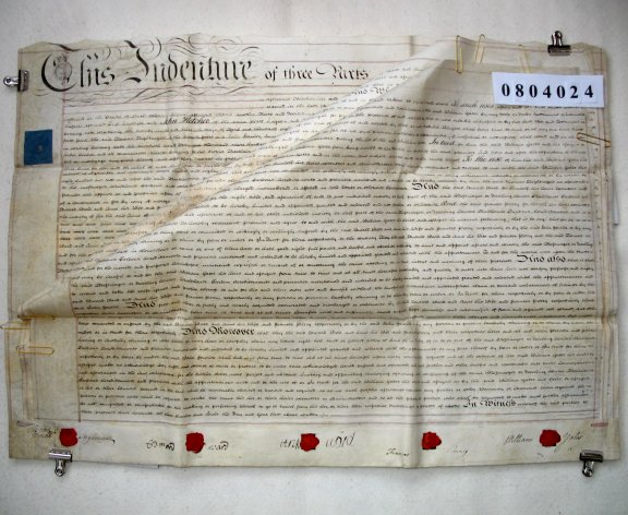 | Parchment : 3 sheets 80cm x 57cm with 5 seals, 5 signatures and revenue stamps. | |||||||||||