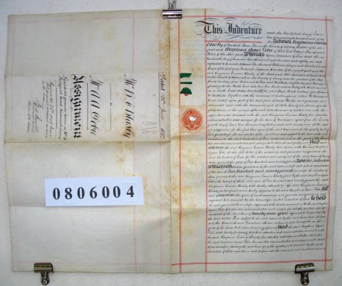 | Parchment : 2 sheets 40cm x 25cm with 2 wax seals, 2 signatures and revenue stamps | ||||||||||||||