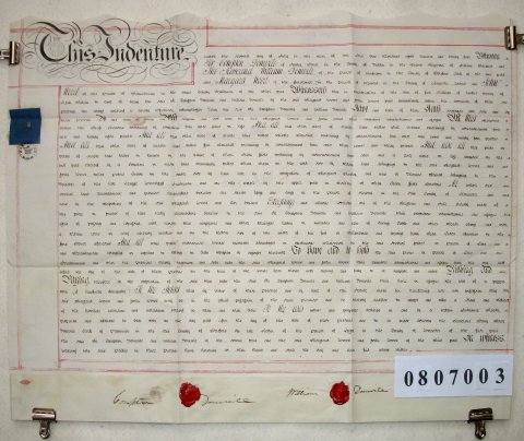 | Parchment : 1 sheet 48cm x 64cm with 2 wax seals, 2 signatures and revenue stamp | |||||||||||||