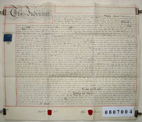 | Parchment : 1 sheet 54cm x 64cm with 2 wax seals, 2 signatures and revenue stamps | |||||||||||||||