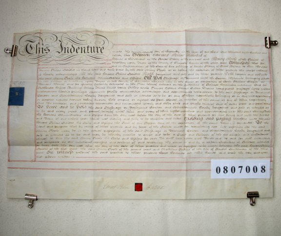 | Parchment : 1 sheet 44cm x 67cm with 1 wax seal, signature and revenue stamp. | ||||||||||||