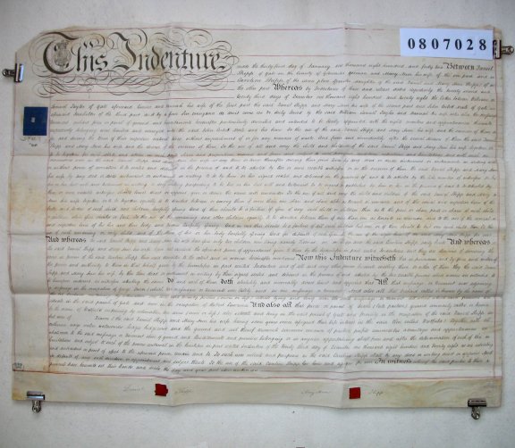 | Parchment : 1 sheet 79cm x 62cm with 2 wax seals, 2 signatures and revenue stamp | ||||||||||||