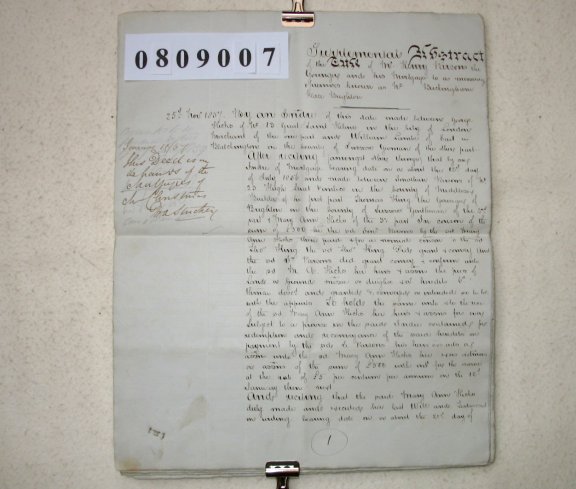 George HICKS of 13 Great St Helens, City of London. Merchant. Jonathan PARSONS of 23 High Street, Pimlico, Middlesex. Builder. SUBJECT The document relates to property at 44 Buckingham Street, Brighton, Sussex, and is described as a "Supplemental Abstract of Title". It summarises events from 1856 to 1865 relating to this property. It begins in 1856 when Jonathan Parsons mortgaged the property to Mary Ann Hicks for £500. She died in 1856 with the mortgage passing to George Hicks. Many complicated transfers of the mortgage follow and ultimately, Jonathan Parsons sells the property to Henry Parsons the Younger (no relationship mentioned) in 1865. | ||||||||||||