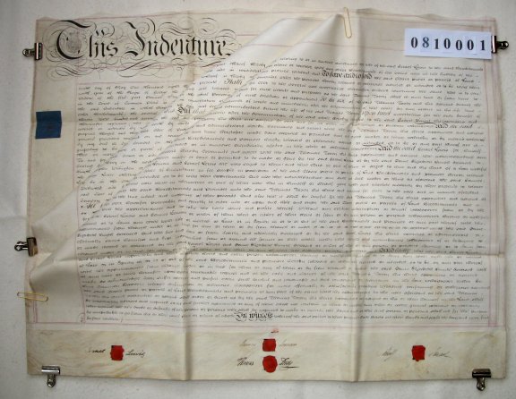 | Parchment : 3 sheets 61cm x 78cm with 4 wax seals, 4 signatures and revenue stamps | |||||||||||
