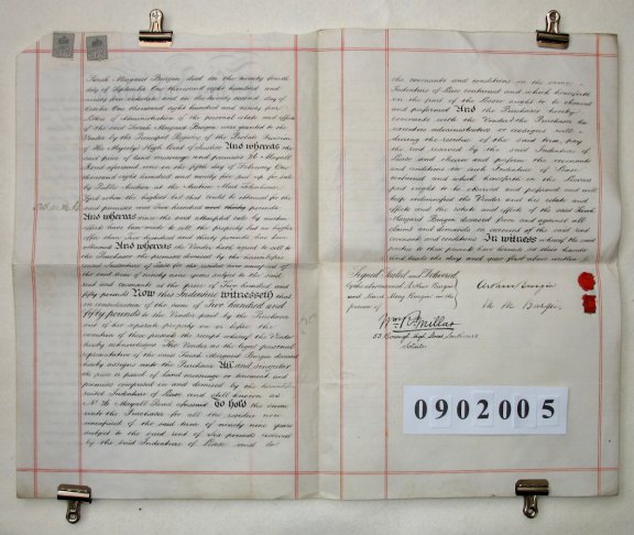 | Parchment : 2 sheets 27cm x 42cm with 2 wax seals, 2 signatures and revenue stamps | ||||||||||||