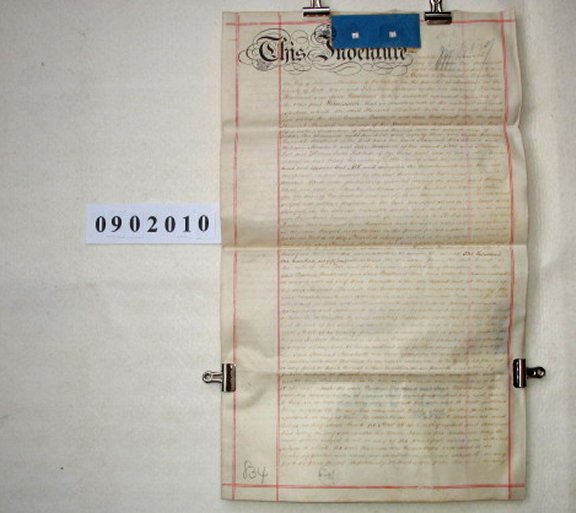 Parchment : 2 sheets 32cm x 25cm with 3 wax seals, 1 signature and reveue stamps