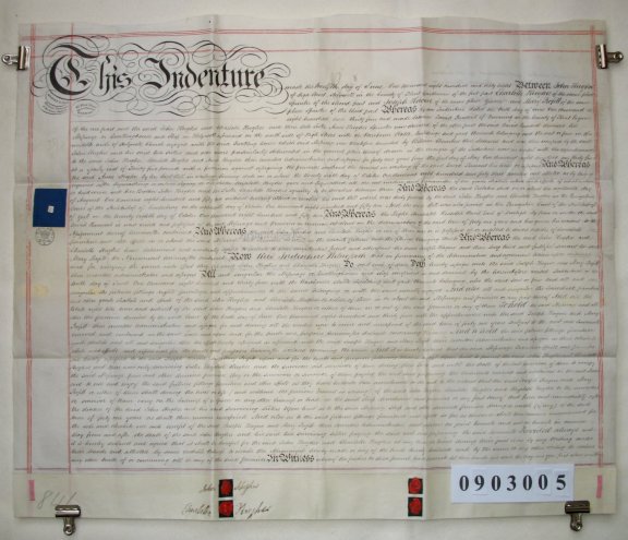| Parchment : 1 sheet 59cm x 72cm with 4 wax seals, 2 signatures an revenue stamps | |||||||||||