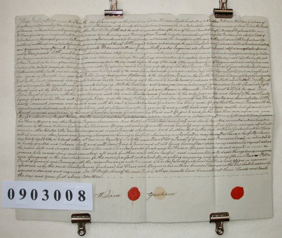 William, GRAHAM of Grey Stone, Parish of Kirklinton, Cumberland. Yeoman. Charles James GRAHAM of Ann's Hill, Parish of Stanwix, Cumberland. Esquire. SUBJECT This is the second part of a contract of sale in which Charles Graham is buying a piece of land from William Graham for 11s (eleven shillings). It is at or near a place called Hetherside at the South end of a plot of land called Rail Close which is already owned by Charles Graham. The piece being sold is 80 yards x 6 yards and lies on the North side of the road from Hetherside to the Longtown Road. | |||||||||||