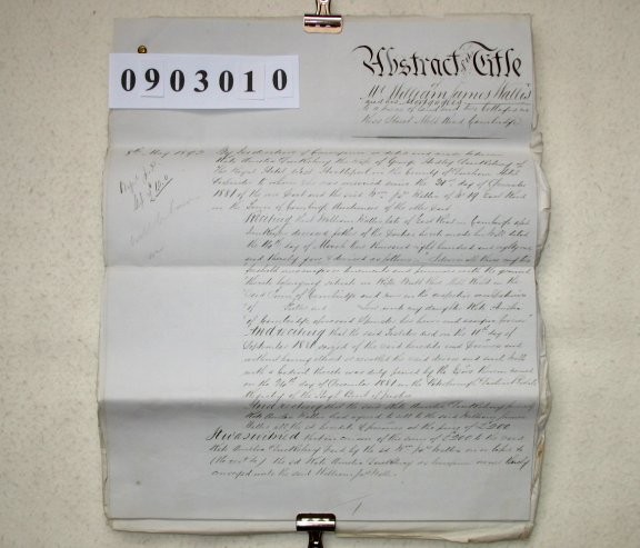William WALLIS the Elder of East Road,Cambridge. Innkeeper. Kate Amelia DUCKSBURY of The Royal Hotel, West Hartlepool. Hotel Proprietor. William James WALLIS of 19 East Road, Cambridge. Auctioneer. SUBJECT The document is entitled "Abstract of Title of Mr William James Wallis and his Mortgagees to a piece of land and two cottages in Ross Street, Mill Road, Cambridge". It appears to consist of a first batch of five sheets covering events in 1893-1905, and then three more sheets covering September 1905, with a final sheet, (this one in typescript), bringing it up-to-date to 1907. It begins by reciting that William Wallis, (the elder), died in 1881 leaving two cottages in Mill Road, Cambridge, to his daughter, Kate Ameila Wallis. Then, in 1903, William James Wallis, (a brother of Kate), bought the cottages from her for £200. All subsequent events are mortgages undertaken, transferred, or repaid, by William James Wallis. | ||||||||||||
