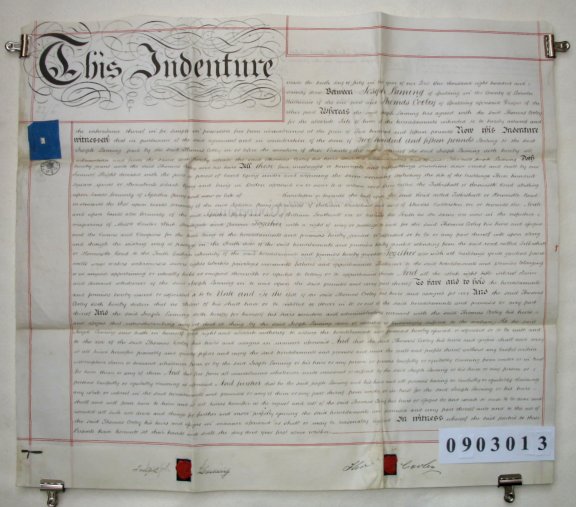 | Parchment : 1 sheet 58cm x 68cm with 2 wax seals, 2 signatures and revenue stamp | |||||||||||