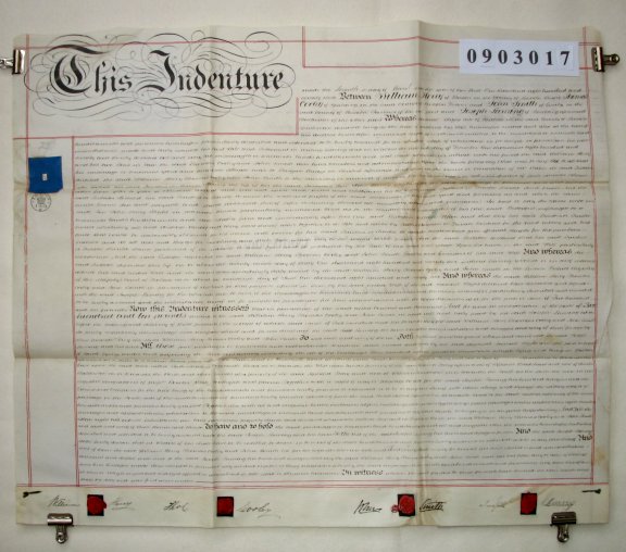 | Parchment : 1 sheet 71cm x 60cm with 4 wax seals, 4 signatures and revenue stamp | |||||||||||