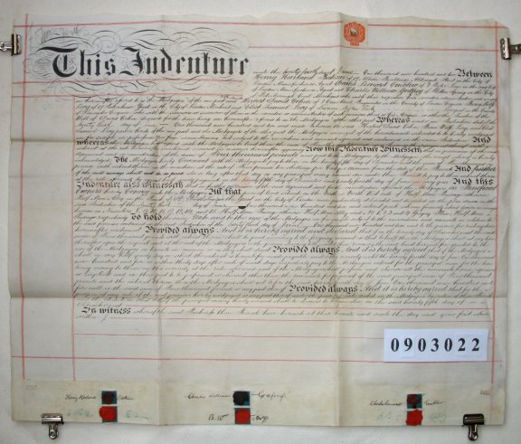 Harry Harland BATESON of 17 Albion Buildings, Aldersgate Street, City of London. Manufacturer's Agent. Charles Leonard EMBLOW of 2 Foster Lane, City of London. Manufacturer's Agent. Charles William GODFREY of Fletton Spring, City of Peterborough, Northamptonshire. Coal Merchant. Herbert David COHEN of Bayswater, Count of London. Esquire. Benn Wolfe LEVY of Tokenhouse Yard, City of London. Merchant. Eliot Samuel LEVY of Lismore, Sefton Park, Liverpool, Lancashire. Esquire. SUBJECT The first three named above (Bateson, Emblow, Godfrey), are mortgaging property in London to the other three (Cohen and the two Levys), for £4000. It lies on the North and North West sides of Half Moon Passage, Parish of St Bartholomew the Great, City of London, and consists of number 8 - 15 Half Moon Passage, and also numbers 1 - 4 Gregory Place, Half Moon Passage. A memorandum on the back dated 1905 mentions the later sale of part of this property and of a building newly erected. | ||||||||||||