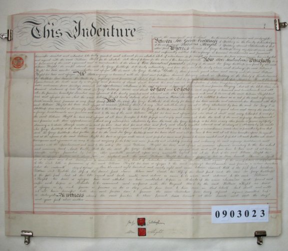 | Parchment : 1 sheet 58cm x 71cm with 2 wax seals, 2 signatures and revenue stamps | ||||||||||||