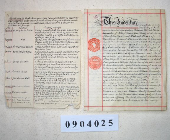 William Norton GAMMIDGE of Foxley Lane, Purley, Surrey. Gentleman. Frederick PRIDAY of Denmark Road, Gloucester, Gloucestershire. Retired Corn Merchant. Ellen Agnes GAMMIDGE of Longford, Gloucestershire. Lucy Ada GAMMIDGE of Longford, Gloucestershire. SUBJECT The document begins by reciting that in 1894 William Gammidge Senior (the father of William Norton Gammidge) acquired a plot of land of 1 acre known as The Pound Piece at Kingsholm, City of Gloucester. William Gammidge Senior died in 1907 having appointed his son William Norton Gammidge and Henry Gammidge (since deceased) and his son in law Frederick Priday as his Executors and Trustees. These are now selling the plot to Ellen and Lucy Gammidge for £650. The memoranda attached summarise sales of portions of this land at various dates from 1930 - 1936. | ||||||||||||