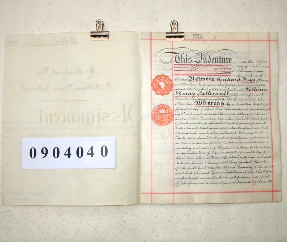 | Parchment : 23cms x 28cms, 2 sheets and cover sheet, with 2 red wax seals and signatures | ||||||||||||