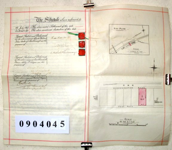 His Grace the Duke of Marlborough, Richard John The Rt Hon Ivor Churchill Baron Ashby St Ledgers Herbert Haynes TWINING of number 222 Strand, London Alfred BERRY of Old Woodstock in the County of Oxford (Occupation - Glover) SUBJECT The Duke of Marlborough is selling a plot of land of 109 feet x 50 feet in Hensington, Parish of Bladon, Oxfordshire, to Alfred Berry for £18/15/0d. The purchaser undertakes to build a dwellinghouse at a cost of at least £185 within 6 months. The plot appears to be one of 7 identical plots close to the railway line. Baron Asby St Legers and Herbert Twining are trustees of the Duke's Blenheim Estate and their consent is therefore required. | ||||||||||||