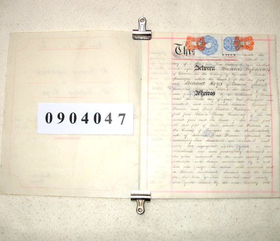 | Parchment : 22cms x 26cms 3 handwritten sheets and cover, revenue stamps and signatures | |||||||||||