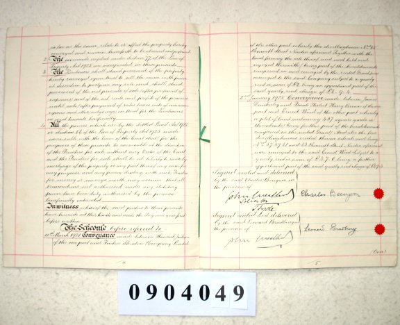 Charles BENYON lately of 55 Bennett Street, Newton, Hyde, Cheshire - now of Tudor House, Norbeck Road, Little Bispham, Near Blackpool, Lancashire. (Electrician) Leonard BRADBURY of 18 Church Street, Hyde, Cheshire. (Publisher's Educational Manager) Maud Lilian BRADBURY his wife SUBJECT Conveyance in fee simple of dwellinghouse at 55 Bennett Street, Newton, Hyde, Cheshire. Consideration £575. The summary and description of this document are being processed and will appear as soon as possible. If you wish to know details in the meantime, please contact familychest@aol.com by email and we will respond by return. | |||||||||||