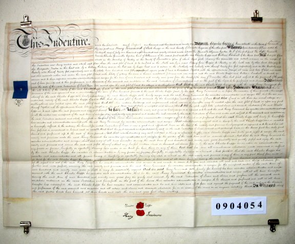 | Parchment : 75cm x 53cm, 1 sheet, 2 red wax seals with signatures, revenue stamp | ||||||||||||