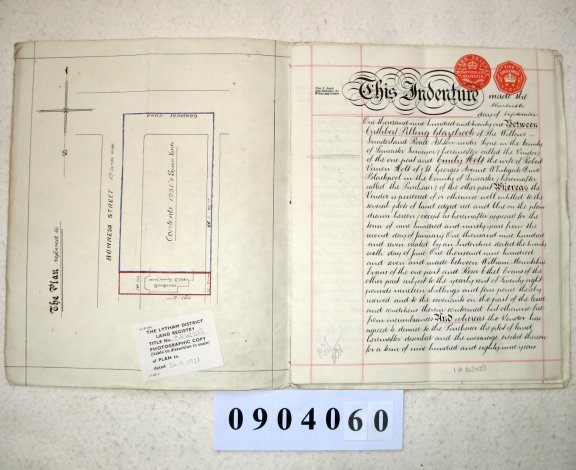| Paper : 20cms x 25cms, eight pages closely written on both sides, cover with plan, signed and sealed, revenue stamp | ||||||||||||