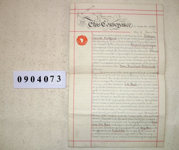 David BEDFORD of Hillcrest, Selby Road, Garforth in the County of York (Grocer's Assistant) Herbert GASCOIGNE of Coupland Road, Garforth in the County of York (Check Weighman) SUBJECT David Bedford is selling a plot of land of 510 square yards with a dwellinghouse in Garforth, Yorkshire, to Herbert Gascoigne for £500. It is on the North Side of the Leeds and Selby Road. The property appears to have come into the hands of David Bedford in 1924. | ||||||||||||