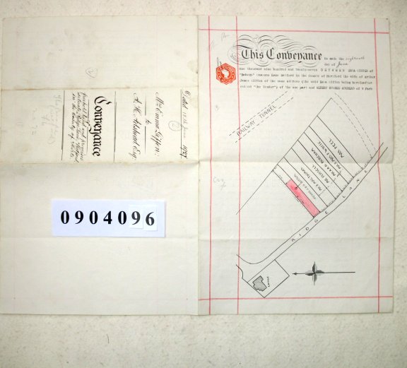 | Paper : two pages 25cms x 40cms, typewritten on three sides with large Plan on first page, Signed and Sealed, Revenue Stamp | ||||||||||||