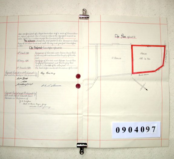 | Paper : 26cms x 42cms, 2 pages, handwritten with plan of property, Signed and Sealed, Revenue Stamp | |||||||||||