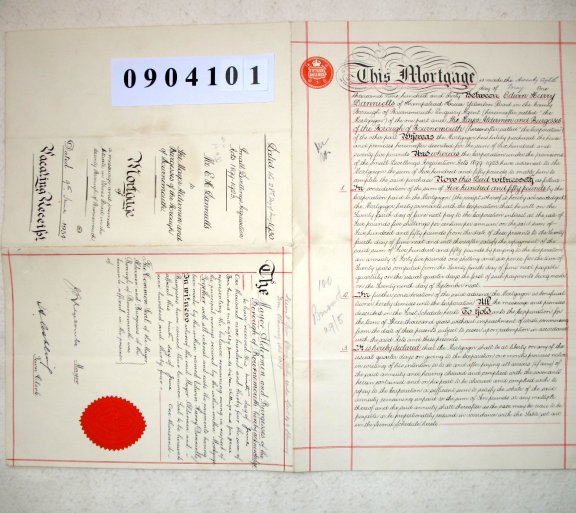 Edwin Harry DANNIELLS of Hampstead House, Yelverston Road in the County of Bournemouth (Enquiry Agent) The Mayor Alderman and Burgesses of the Borough of Bournemouth. SUBJECT Edwin Danniells is mortgaging property at 25 Elmes Road, Moordown, Bournemouth, to the Bournemouth Corporation for £550. An acknowledgement added on the back indicates that the mortgage was repaid in 1934. | |||||||||||