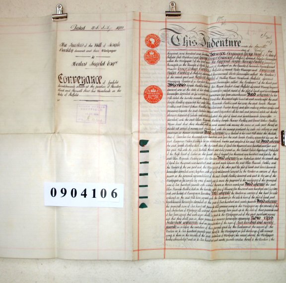 Benjamin George WOOD of the city of Sheffield (Steel Merchant) George Ernest BRANSON of the city of Sheffield (Solicitor) The Rev Joseph Thomas BARKBY formerly of Harrogate, Yorkshire but now of Southport, Lancashire Ernest Arthur BARKBY of Sheffield (Works Manager) Benjamin Walter BARKBY of Sheffield (Commercial Clerk) Herbert INGOLD of Woolley House, Wincobank, Sheffield (Managing Director of a Limited Company) SUBJECT Conveyance of freehold hereditaments situate at the junction of Standon Road and Stanwell Street, Low Wicobank, Sheffield. The summary and description of this document are being processed and will appear as soon as possible. If you wish to know details in the meantime, please contact familychest@aol.com by email and we will respond by return. | |||||||||||